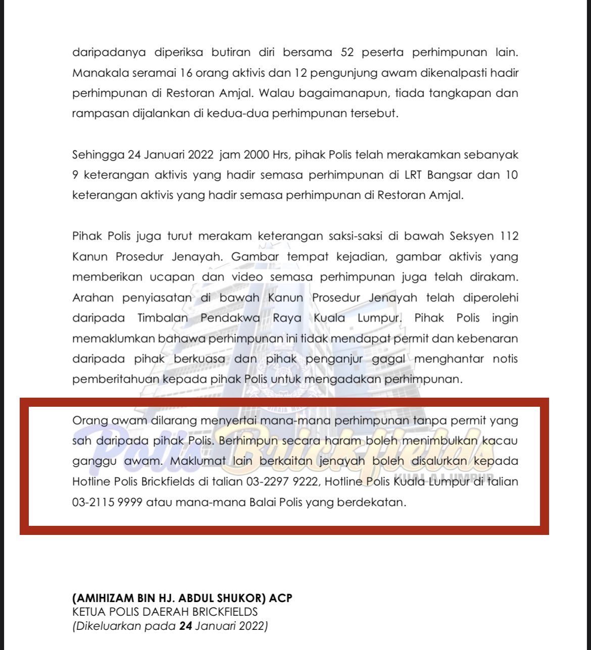 Notis Dari Polis Buat Penganjur Janji Demokrasi